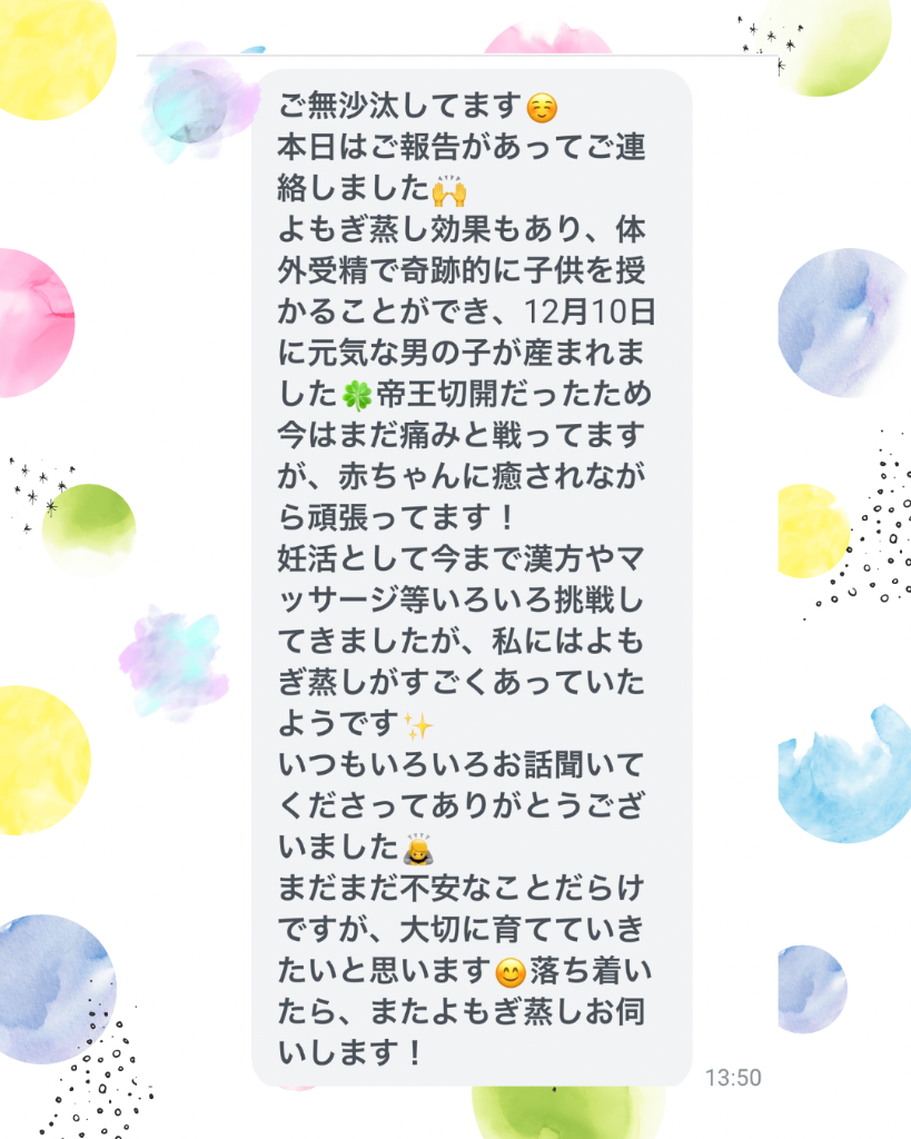 よもぎ蒸しに通ってくださっていたお客様が